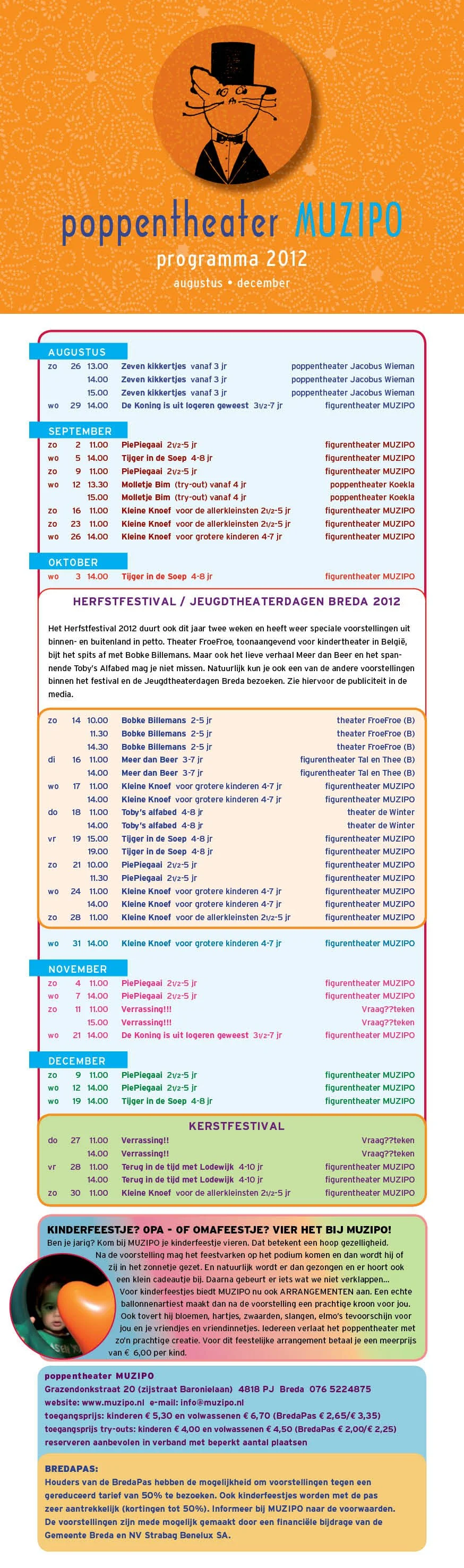 Muzipo poppentheaterPromotie materiaal voor oude als nu producties van het ‘leukste kindertheater van Breda’